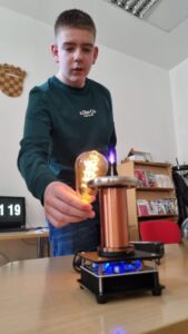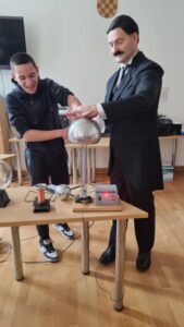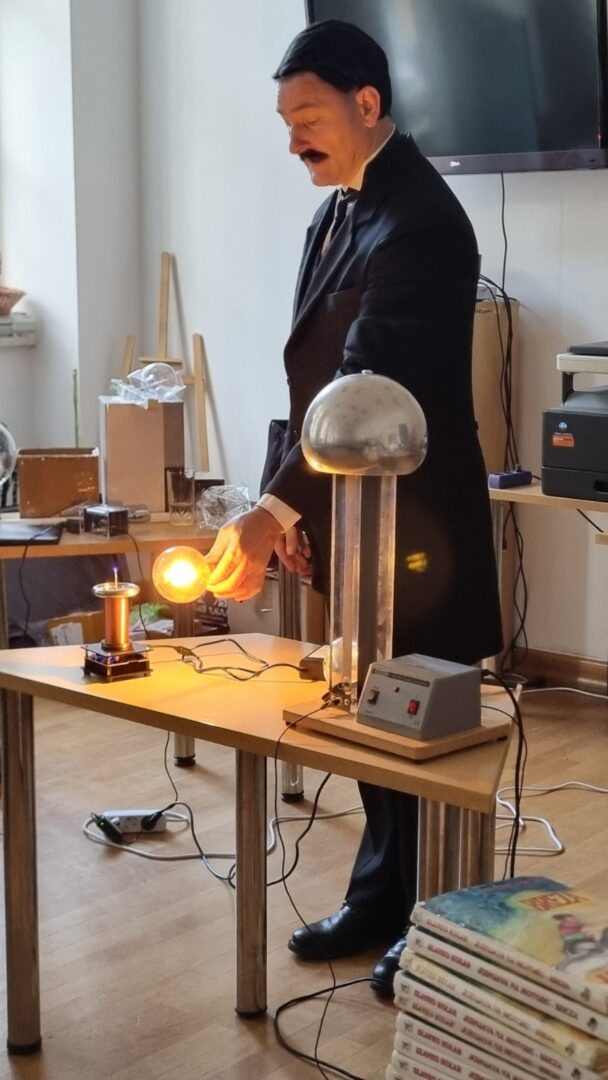 Od uređaja koji se koriste u demonstracijama, danas je na radionici bio Van de Graafov generator statičkog elektriciteta (munje, papirnate čaše i perika), a uz njega Teslina Zavojnica koja je u srcu svih tehnologija bežičnog komuniciranja!