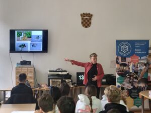 Predavanje učenicima osmih razreda držala je Tena Korkut, prof. – predsjednica Udruge za očuvanje židovske baštine i kulture te praunuka prve karlovačke žrtve holokausta.
