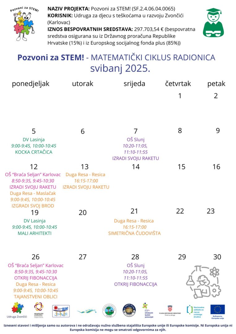 Udruga za djecu s teškoćama u razvoju Zvončići najavljuje nastavak edukativnih i interaktivnih radionica za djecu osnovnoškolske i vrtićke dobi u STEM području, a koje se provode u sklopu projekta sufinanciranog sredstvima Europske Unije naziva „Pozvoni za STEM!“ SF.2.4.06.04.0065 u iznosu od 297.703,54 €.